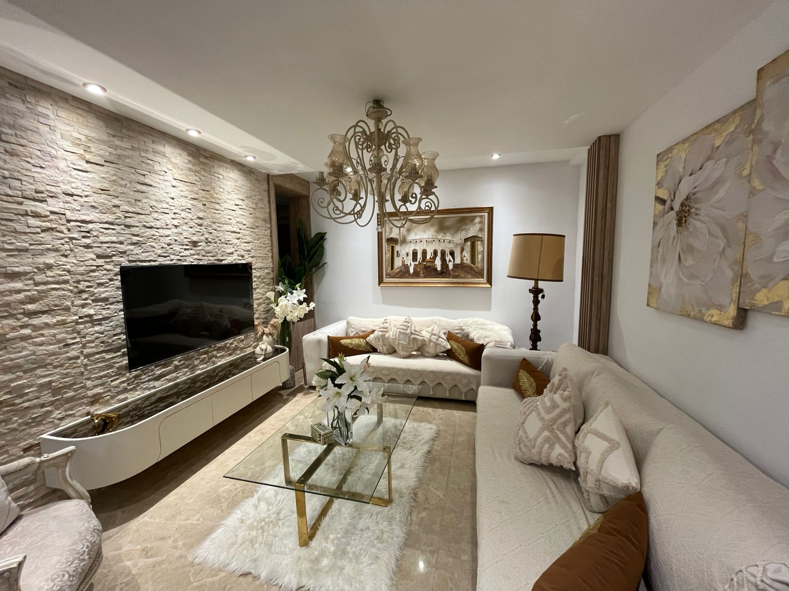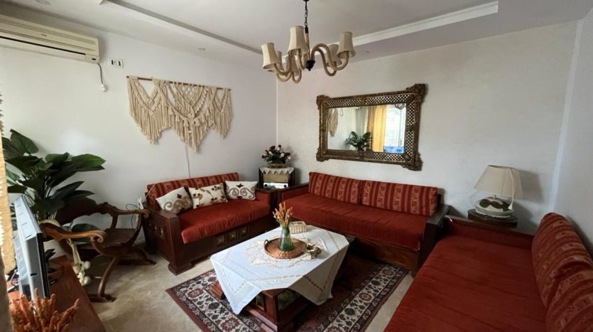 composé d’un hall d’entrée. Un salon une salle à manger, une cuisine équipée , une salle de bain et deux chambres a coucher