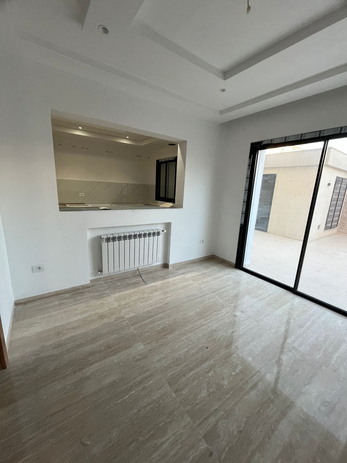 Une kitchenette et une grande terrasse.
